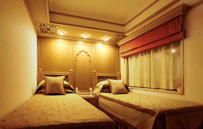 A train that never fails to showcase the splendors of India, Maharajas' Express transports you to the period of royalty. Everything about the train oozes richness, and the suites in the train are luxury redefined. The rail coaches of the suites are named after the precious gems Heera (Diamond) & Neelam (Blue Sapphire) indicating the luxury and splendors offered on-board. There are total of four suites, all of which are double bedded and have large panoramic windows.