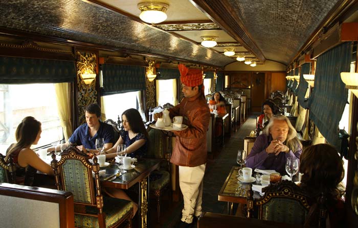 The Luxurious Maharajas’ Express is an experience in itself. From lavish stay to amazing facilities, the train also has two thematic fine dining restaurants offering delicious meals amid a soul soothing environment. The names of the restaurants are aptly suited to the tastefully crafted design, ambience and concept. One of the restaurants is named “Mayur Mahal”, named after India’s national bird peacock, while the other is named “Rang Mahal” literally meaning ‘The Palace of Colours’.