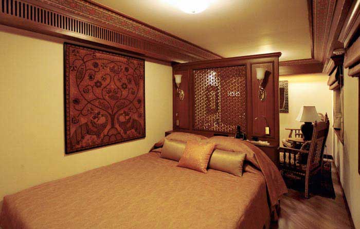 The Presidential suite is aptly named Navratana (nine precious gems) and has a living room, 2 bedrooms and washrooms. The guests here are offered a 24 hours personal valet to provide with attentive and luxury service. The suite is well equipped with international features to create a memorable stay for the guests. The tariff of presidential suite is inclusive of an exclusive language speaking guide and Luxury car during the off-board journeys.